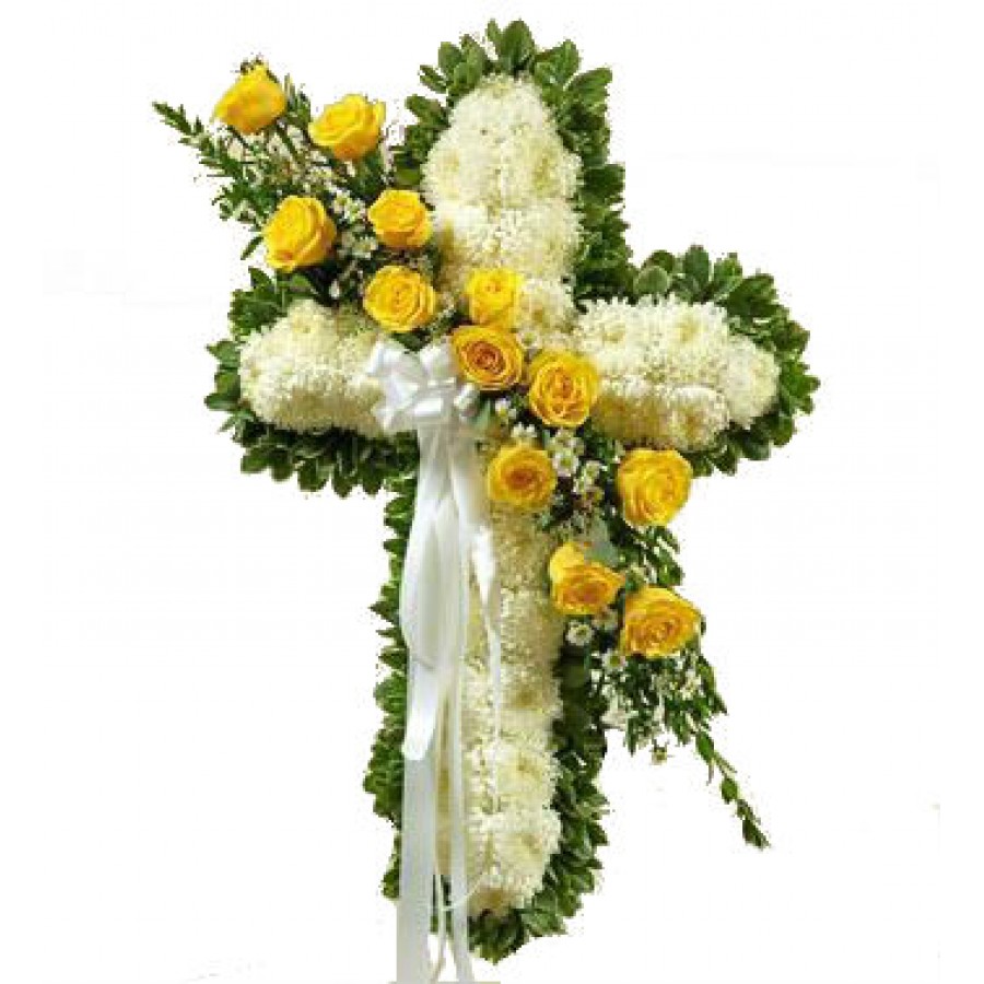 This beautiful Cross Tribute Yellow is a wonderful floral tribute that shows your faith, hope and love during this difficult time.