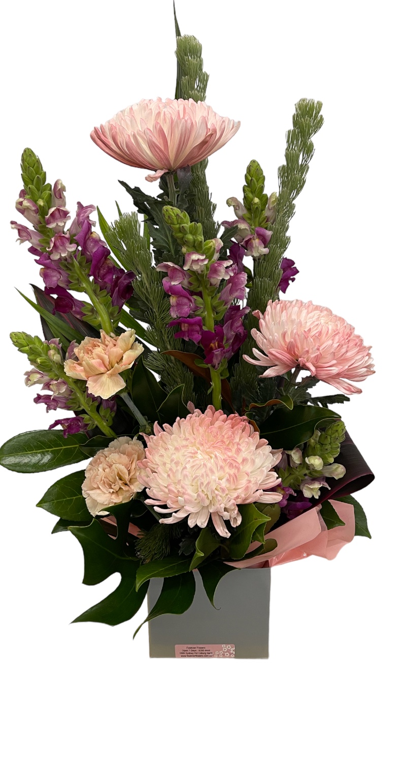 Seasonal Box Arrangement – flowers may change depending on what is available in store and in season.